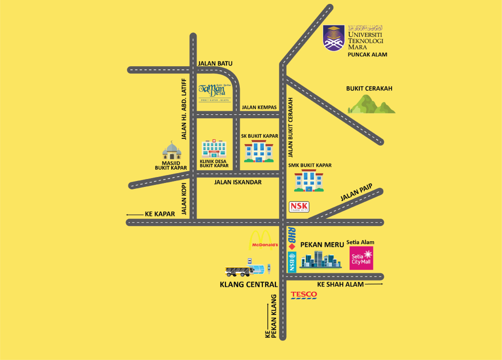 Taman Desa Bukit Berlian goes beyond architecture; it embodies a lifestyle. Nestled strategically, it gifts residents the best of two realms. A serene cocoon offers respite from the world’s hustle, while quick access to essential landmarks like KLCC, transportation nodes like KTM Klang and Port Klang, and retail havens like Setia City Mall and KLIA promises convenience at your doorstep.